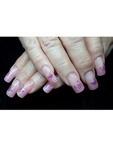 The butterfly has such powerful meaning other than its glory. A butterfly symbolizes change, rebirth, renewal and happiness. Wear these purple butterfly designed glitter nail art stickers to show your happiness.